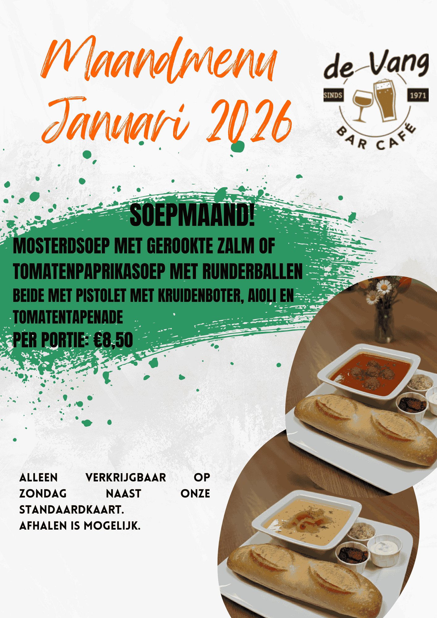 Klik op één van de afbeeldingen om de afbeelding te vergroten en scrol naar onder voor onze menukaart.